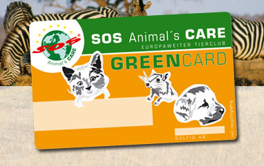 Jedes Mitglied der SOS Animal´s Care erhält als sichtbaren Ausweis der Unterstützung des Tierschutzes die Greencard. Diese Karte ermöglicht Ihnen, alle vereinbarten Serviceleistungen rund um das Thema "Tier und Umwelt" abzurufen.